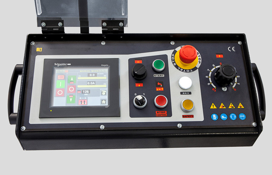 Ciklus rezanja aktivira se jednim prekidačem - stroj automatski steže materijal, pokreće traku i sustav hlađenja, izvršava rezanje, zaustavlja traku i hlađenje te podiže ruku u početni položaj. Intuitivno upravljanje omogućuje zaslon osjetljiv na dodir smješten na ergonomskoj, rotirajućoj upravljačkoj ploči. Na zaslonu se prikazuje visina ruke, broj komada, dijagnostika stroja i brzina trake.