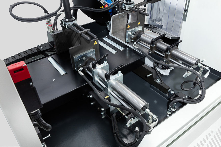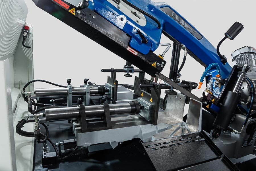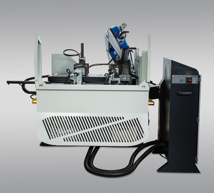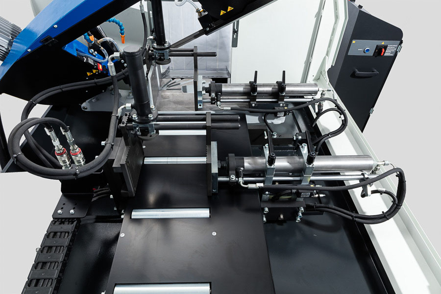 Kontinuirano ručno podešavanje kuta rezanja od 90° do 45°. Upravljačka ploča s 7,5” zaslonom osjetljivim na dodir omogućuje intuitivno upravljanje svim funkcijama. Regulacija tlaka škripca i frekvencijski pretvarač omogućuju optimalno podešavanje brzine trake pile (15–90 m/min) za maksimalnu točnost i dug vijek trajanja trake.
