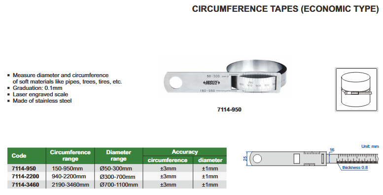 Traka za mjerenje opsega, 940-2200 mm, Insize