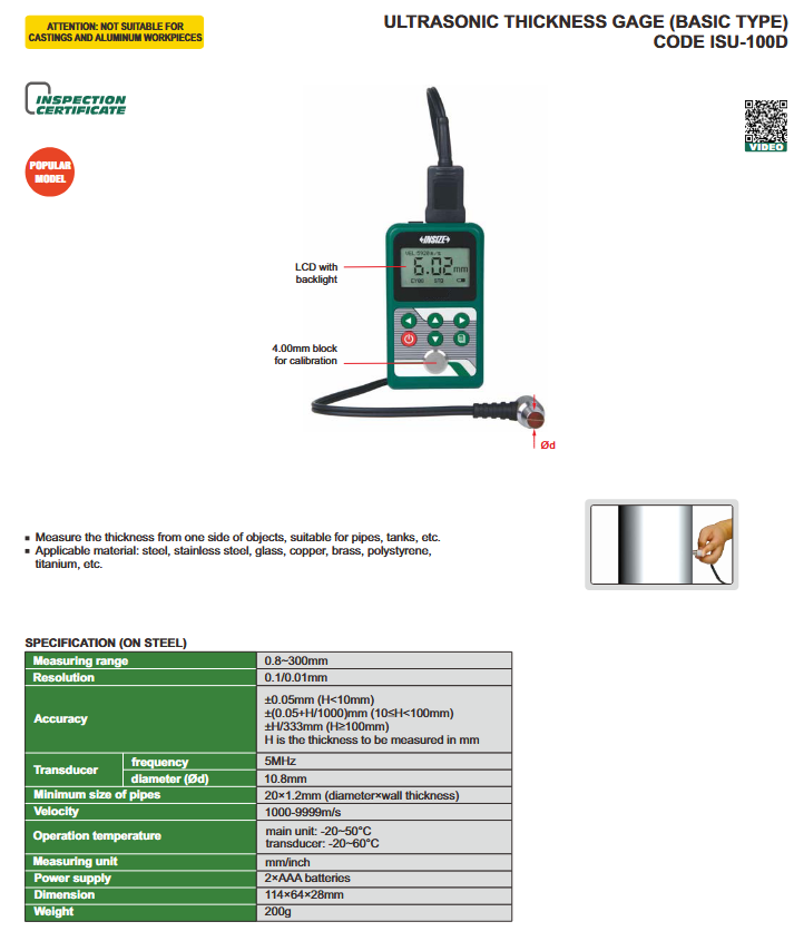 Ultrazvučni mjerač debljine, ISU-100D, Insize
