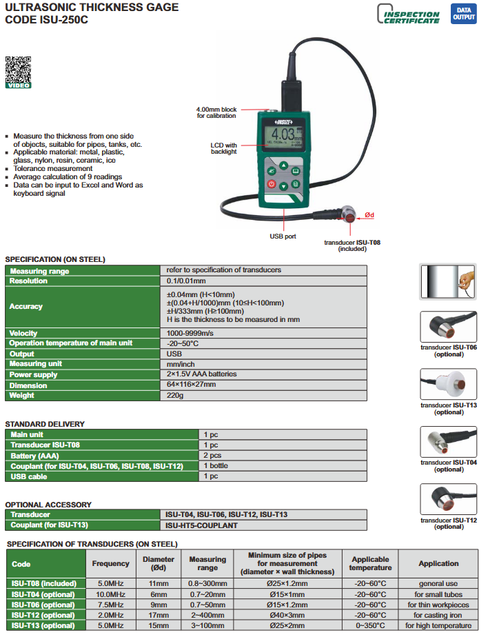Ultrazvučni mjerač debljine, ISU-250C, Insize
