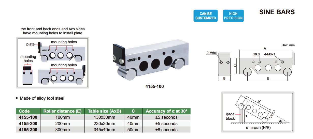 Sinusno ravnalo za precizno podešavanje i kontrolu kutova u mjernim i alatničkim primjenama.
