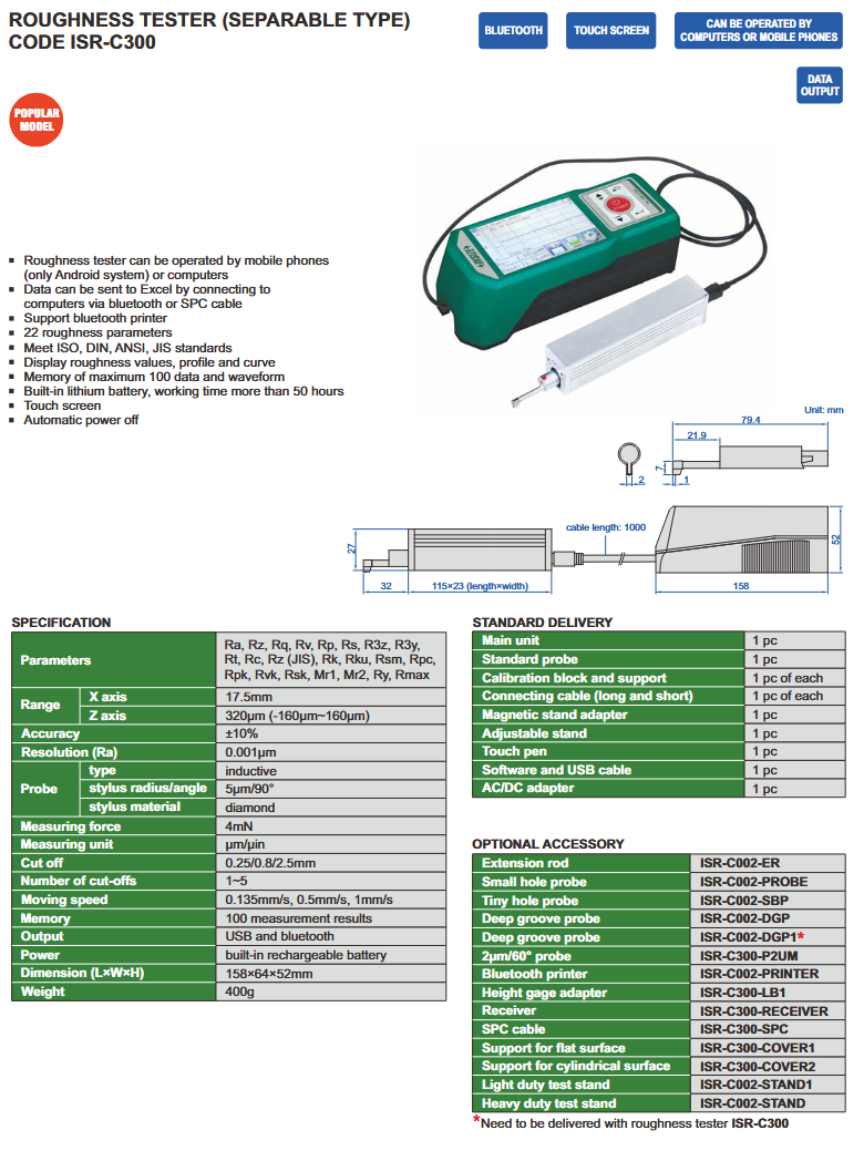 Uređaj za mjerenje hrapavosti ISR-C300, Insize