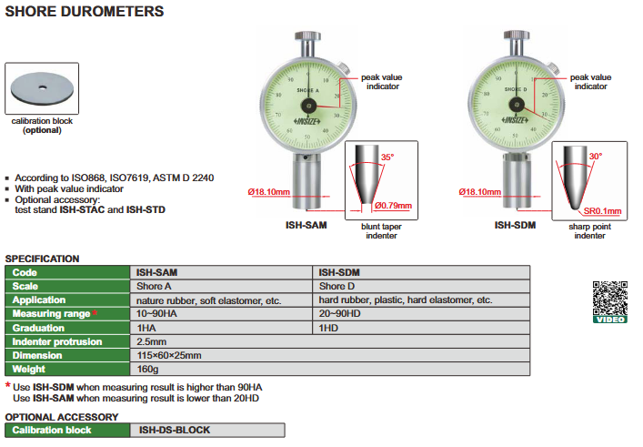 Uređaj za ispitivanje tvrdoće, Shore, ISH-SAM, Insize