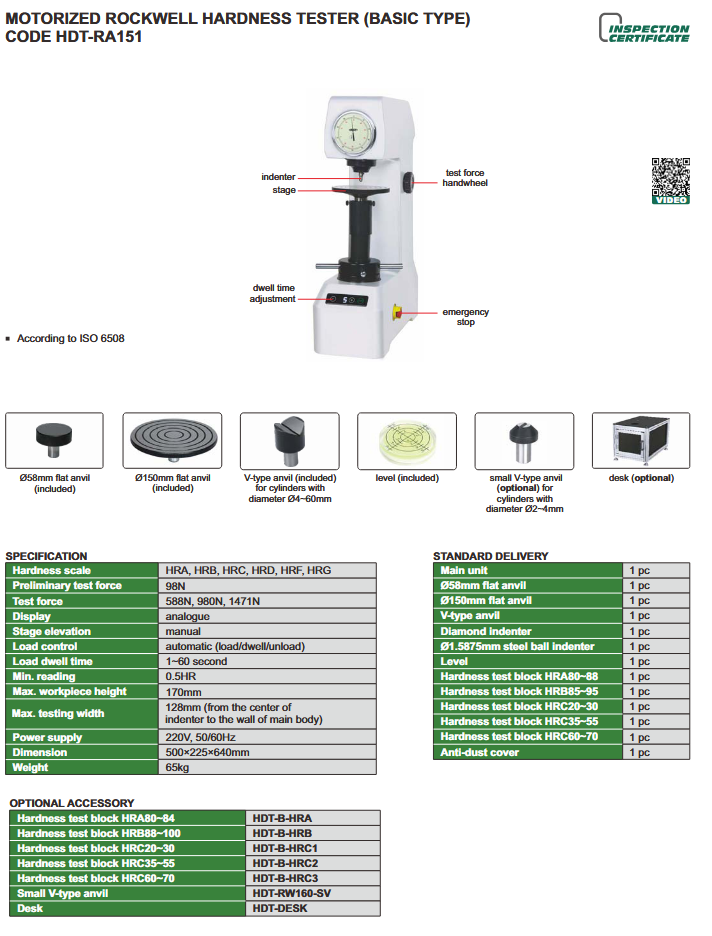 - Hardness scale: HRA, HRB, HRC, HRD, HRF, HRG