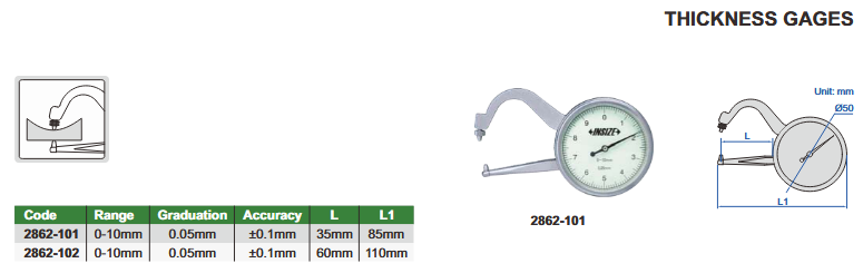 Uređaj za mjerenje debljine 0-10 mm, L = 35mm, Insize