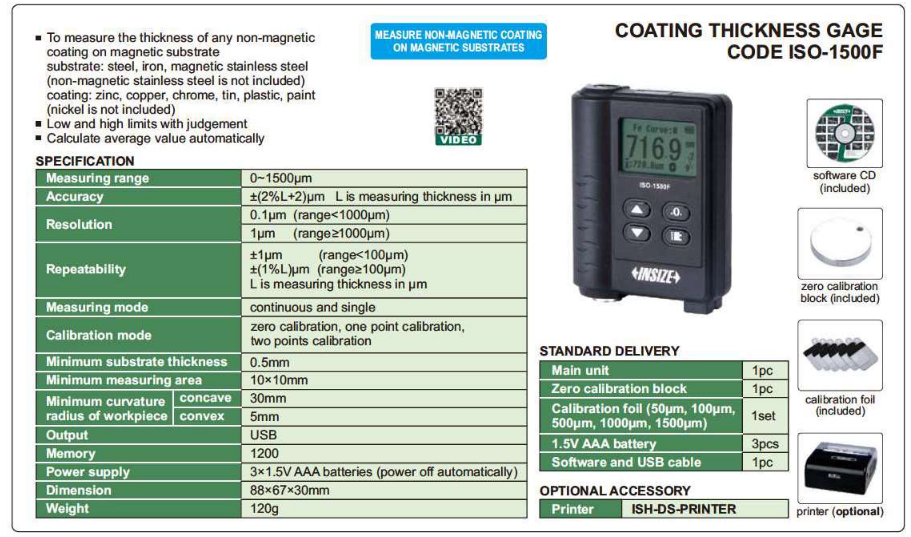 Uređaj za mjerenje debljine presvlake, ISO-1500F, Insize