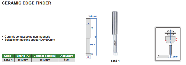 Uređaj za traženje ruba materjala s keramičkim vrhom, Ø10 mm, Insize