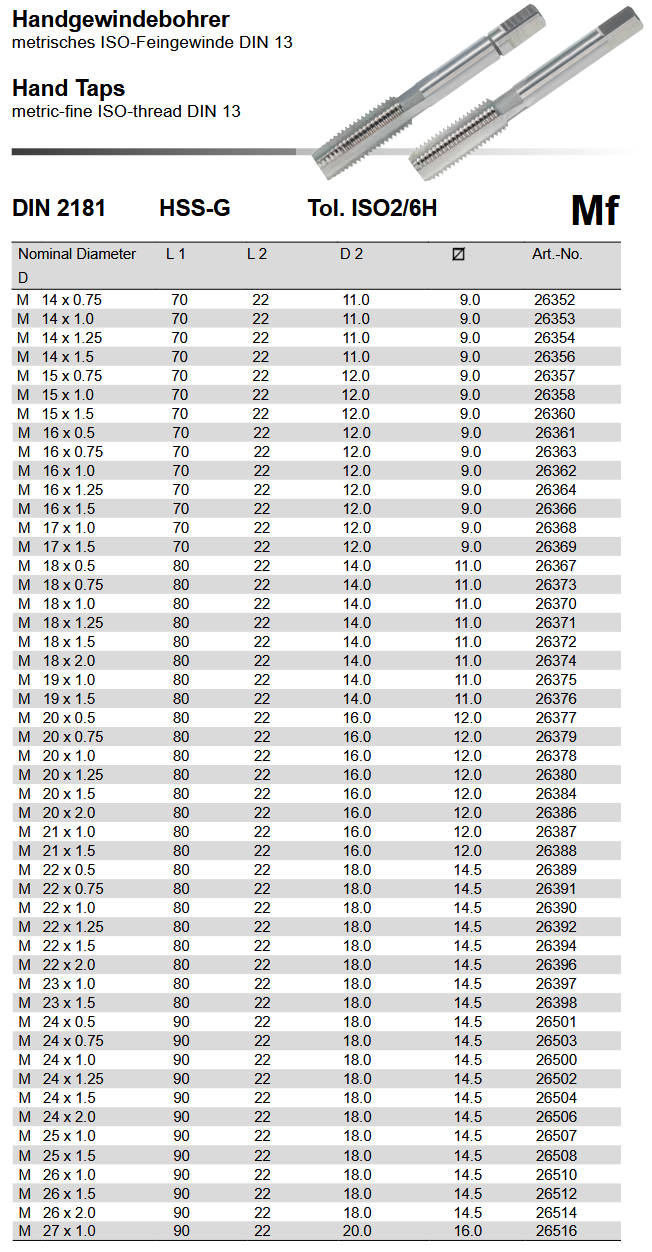 volkel ručni ureznici ručni metrički fini m30x1.5 hssg hss-g din2181 din 2181 desni 22 mm