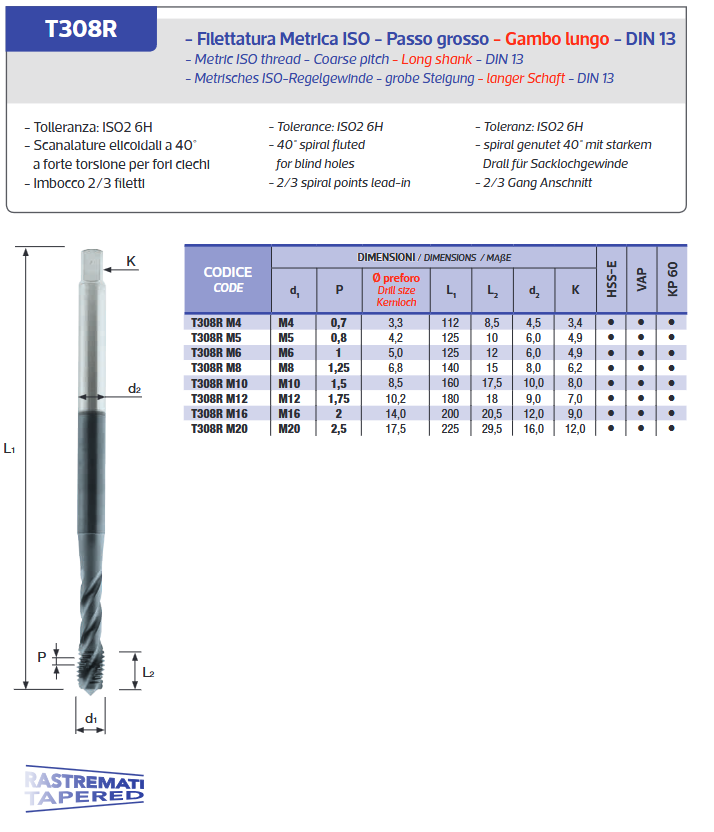 Ureznik T308R M8, HSS-E, Bft Burzoni