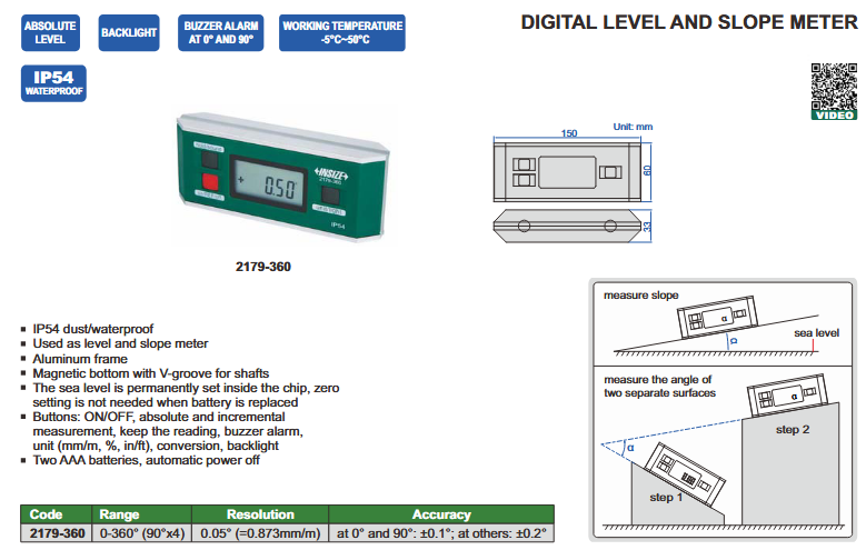 Vaga i kutomjer - digitalni, 0-360°, 90°×4, Insize