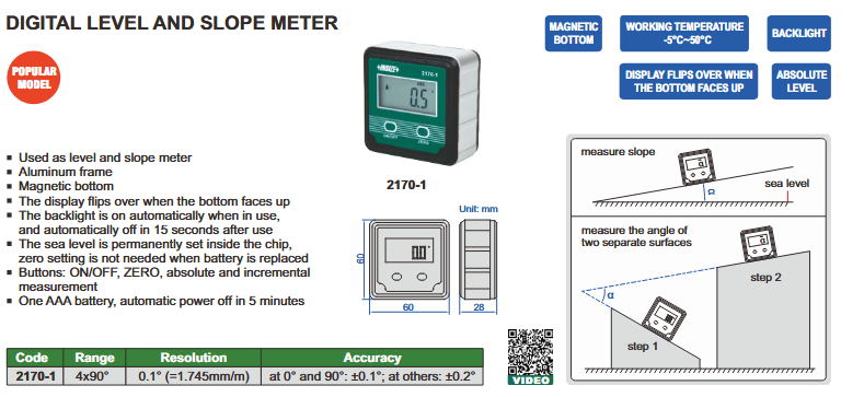 Vaga i kutomjer - digitalni, 4x90°, Insize
