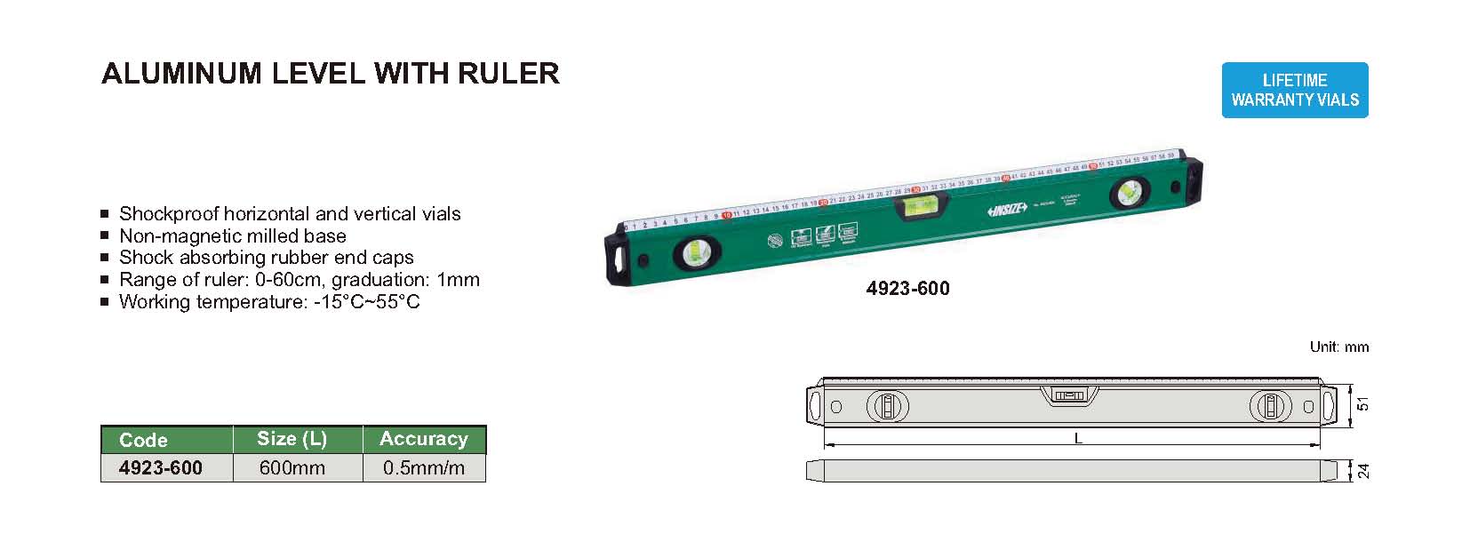 Vaga za niveliranje s ravnalom 600 mm, Insize