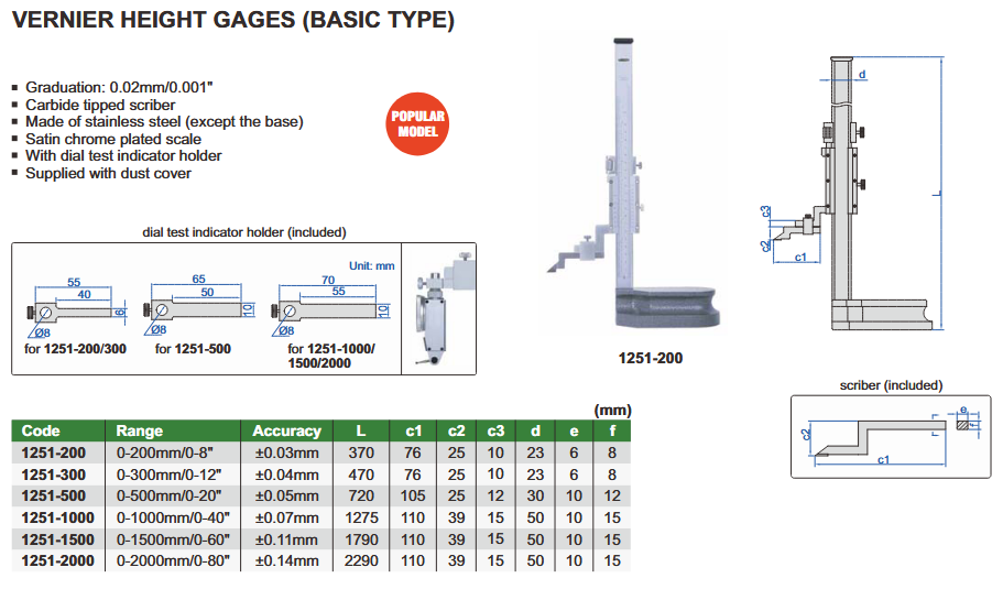 Visinomjer analogni 0-1000 mm 0.02 mm, Insize