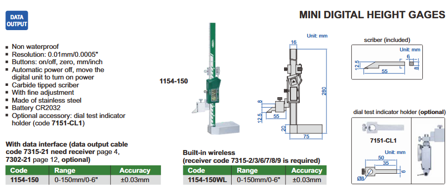 Visinomjer digitalni 0-150 mm, Insize