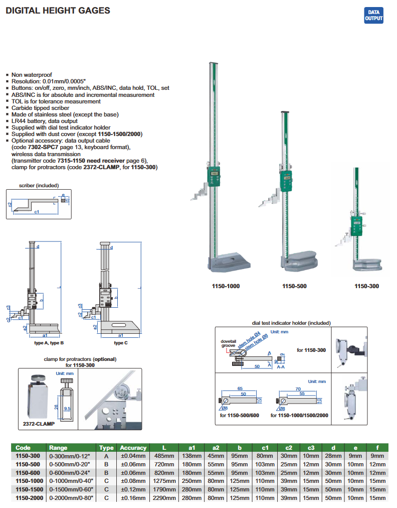 - funkcije: on/off, zero, mm/inch, ABS/INC, data hold, TOL set