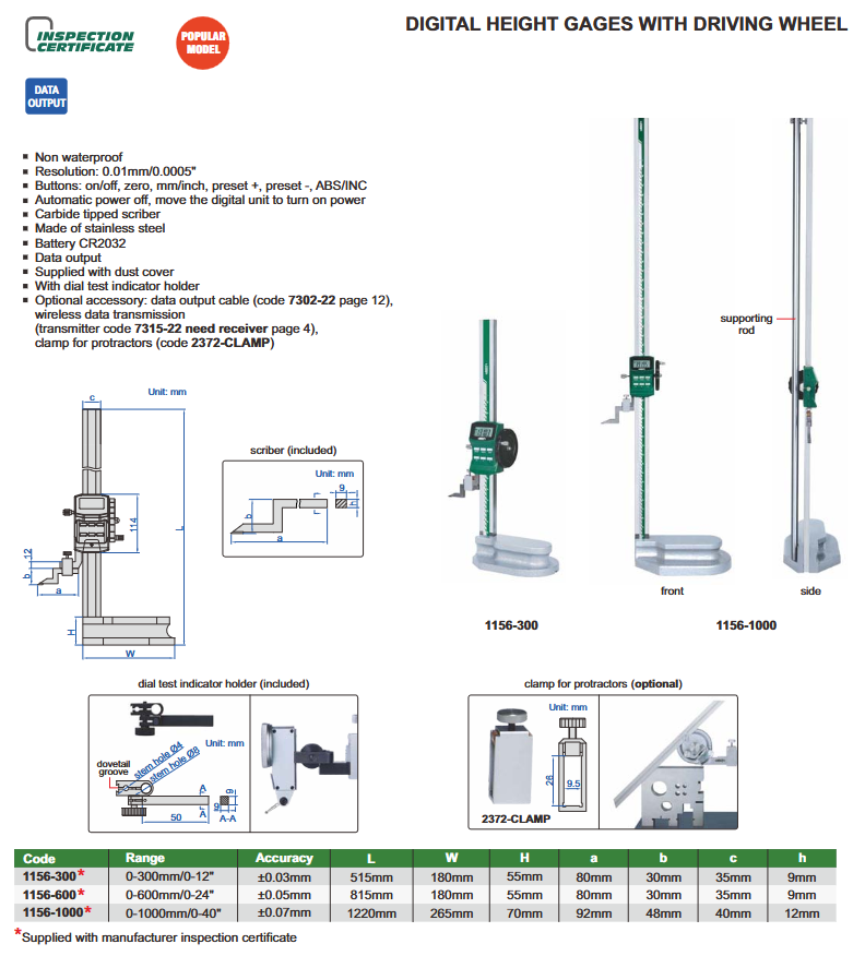 Visinomjer - digitalni, s kotačićem, 0-300 mm