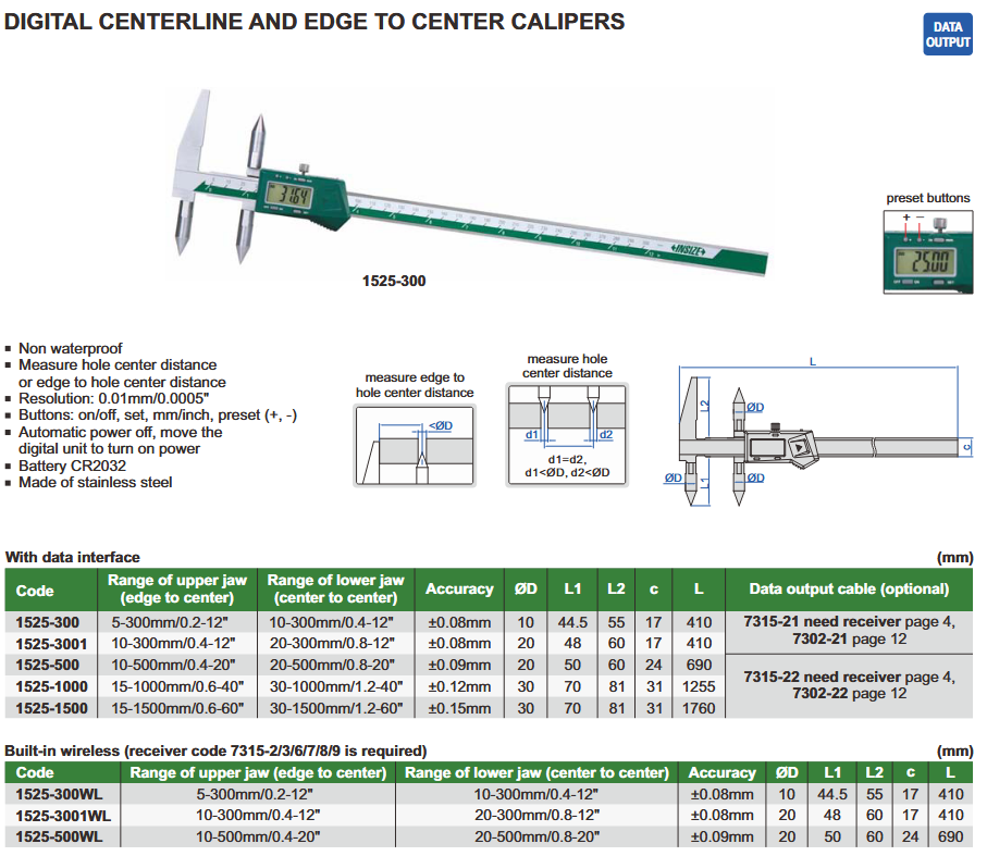 Digital Centerline/Edge To Center Caliper 15-1500mm