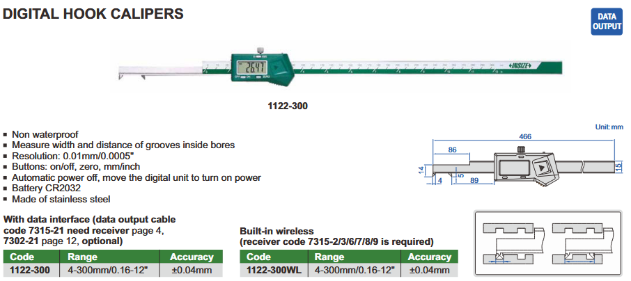 Digital Hook Caliper 4-300 mm 0.01mm, Insize