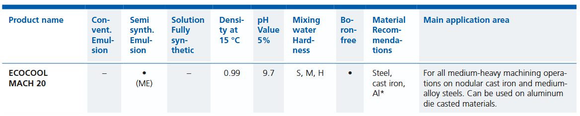- Polusintetski rashladni lubrikanti bez formaldehida i bora za rezanje i brušenje željeznih materijala i aluminija.