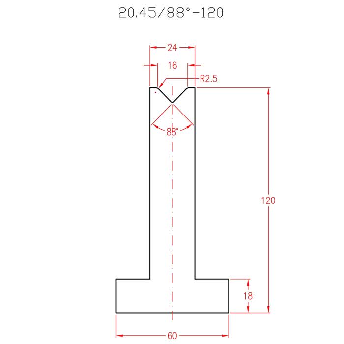 Donji alat za savijanje 20.45/88° H=120 mm, V=16 mm, L=835 mm