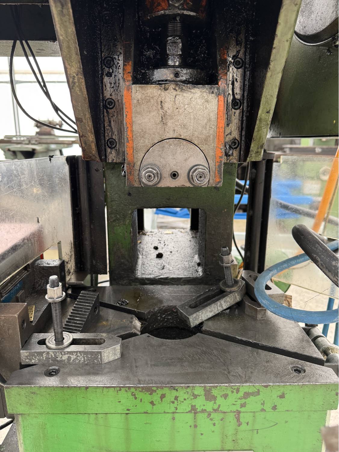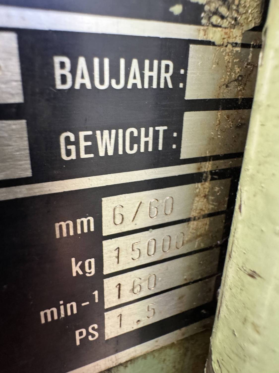 - Tlačna sila (Stößeldruck): 15 000 kg ≈ 150 kN (≈ 15 t)