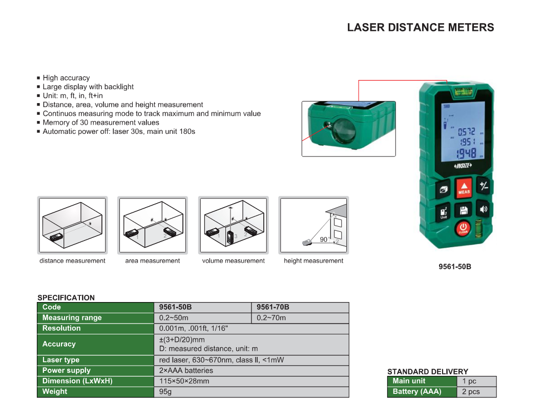 - Raspon mjerenja : 0.2 ~ 70 m (9561-70B)