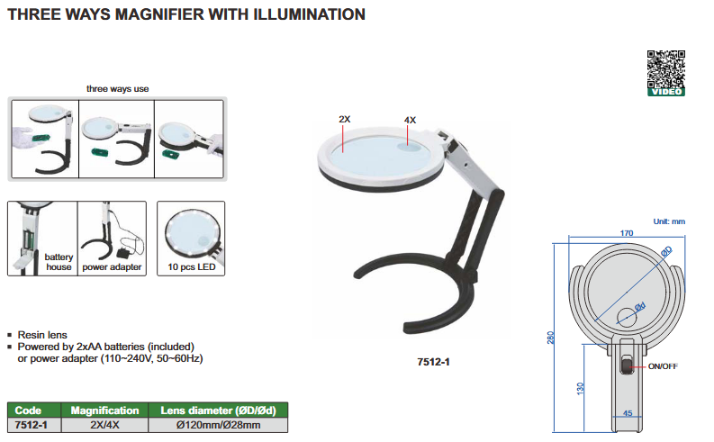 Three Ways Magnifier With Illumination 2X/4X