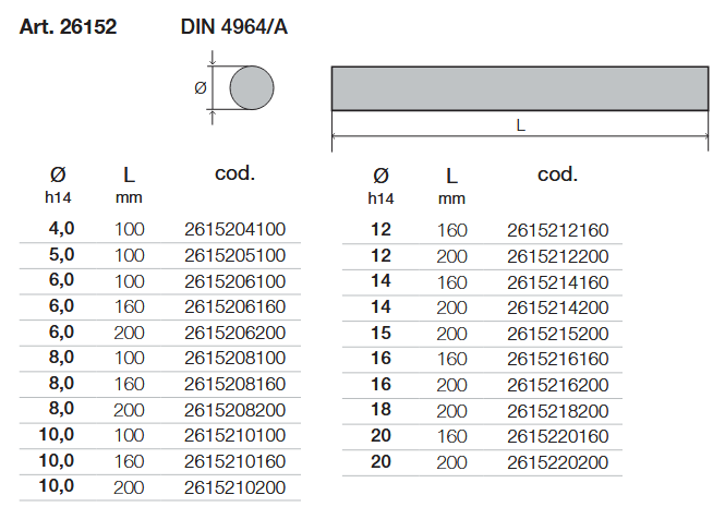 Stirija HSS-Co10% D6 mm L=200 mm, Krino